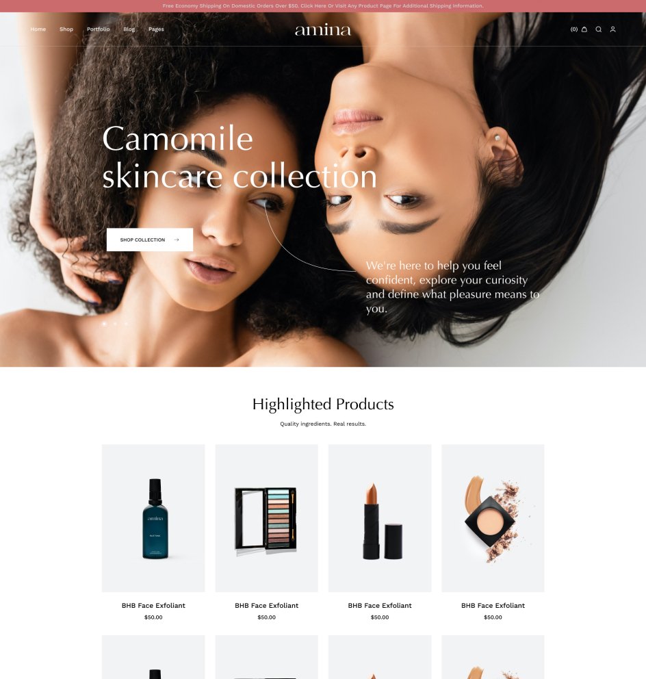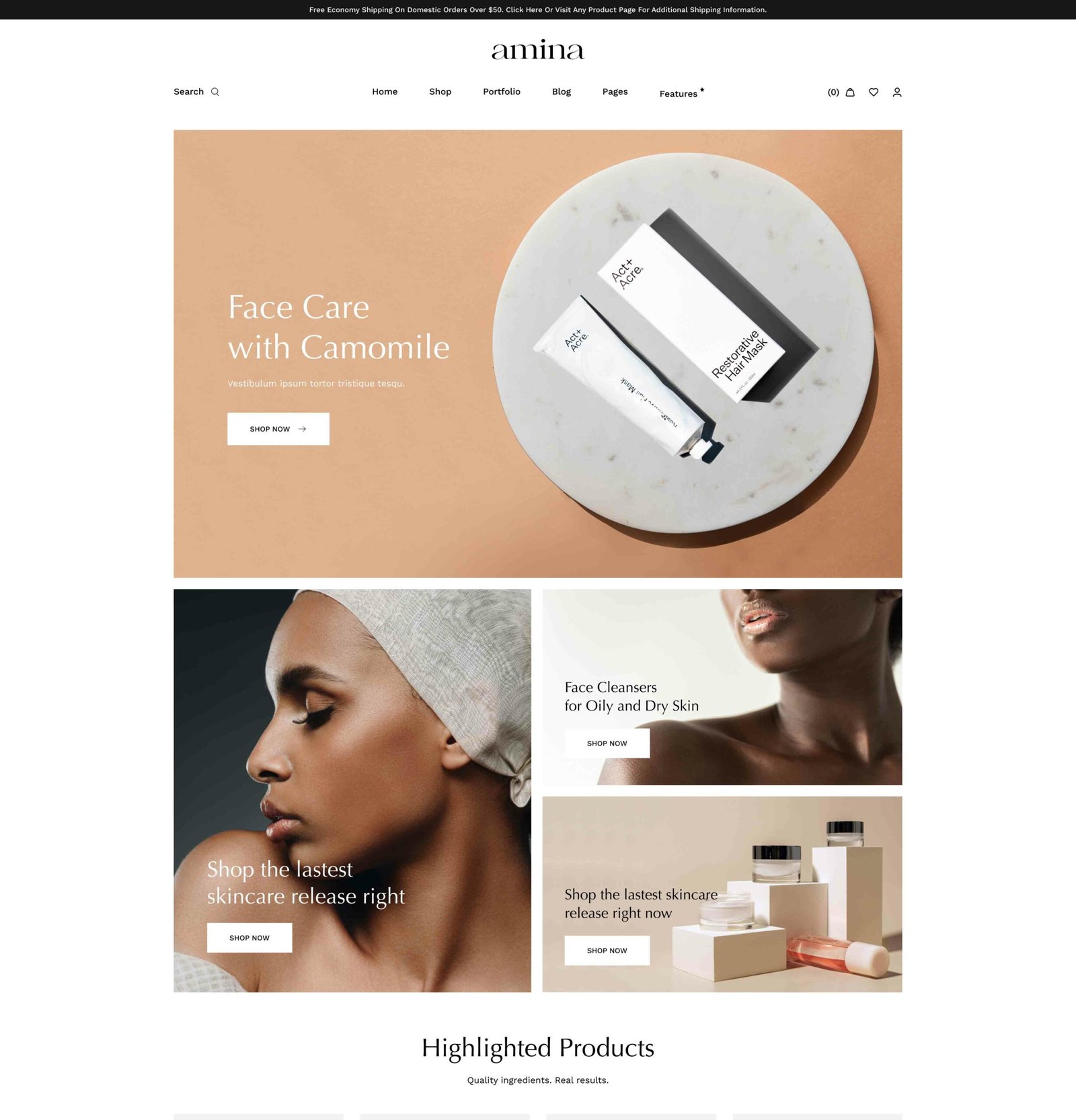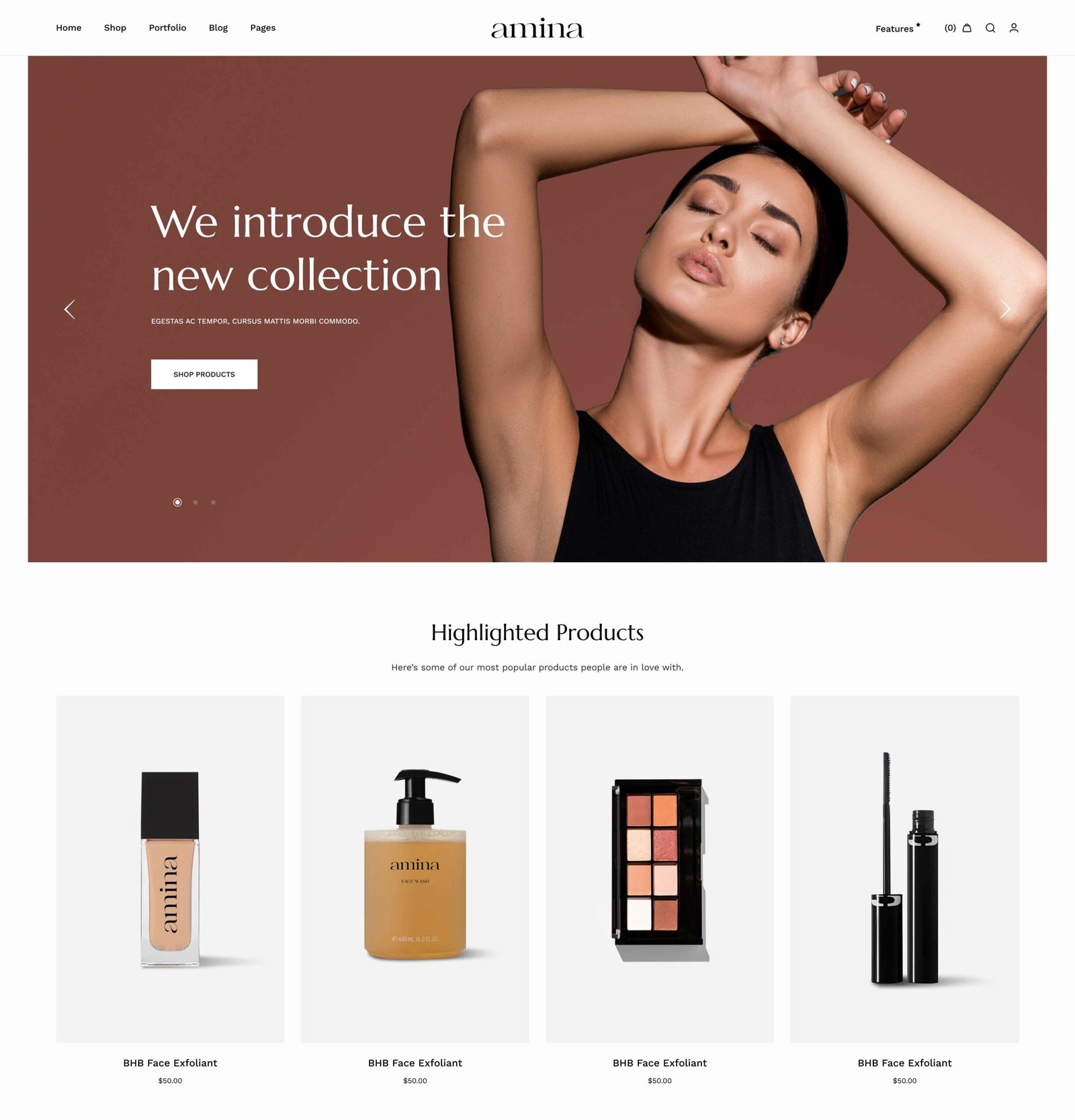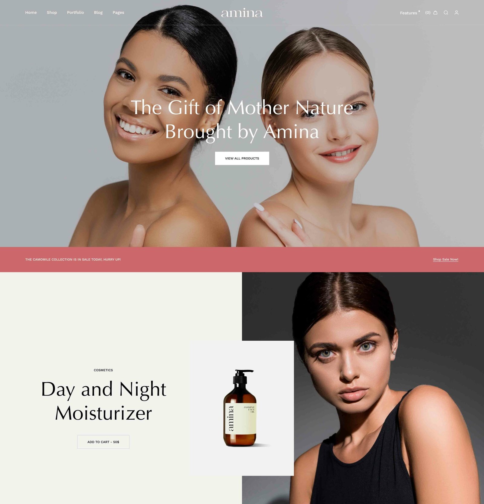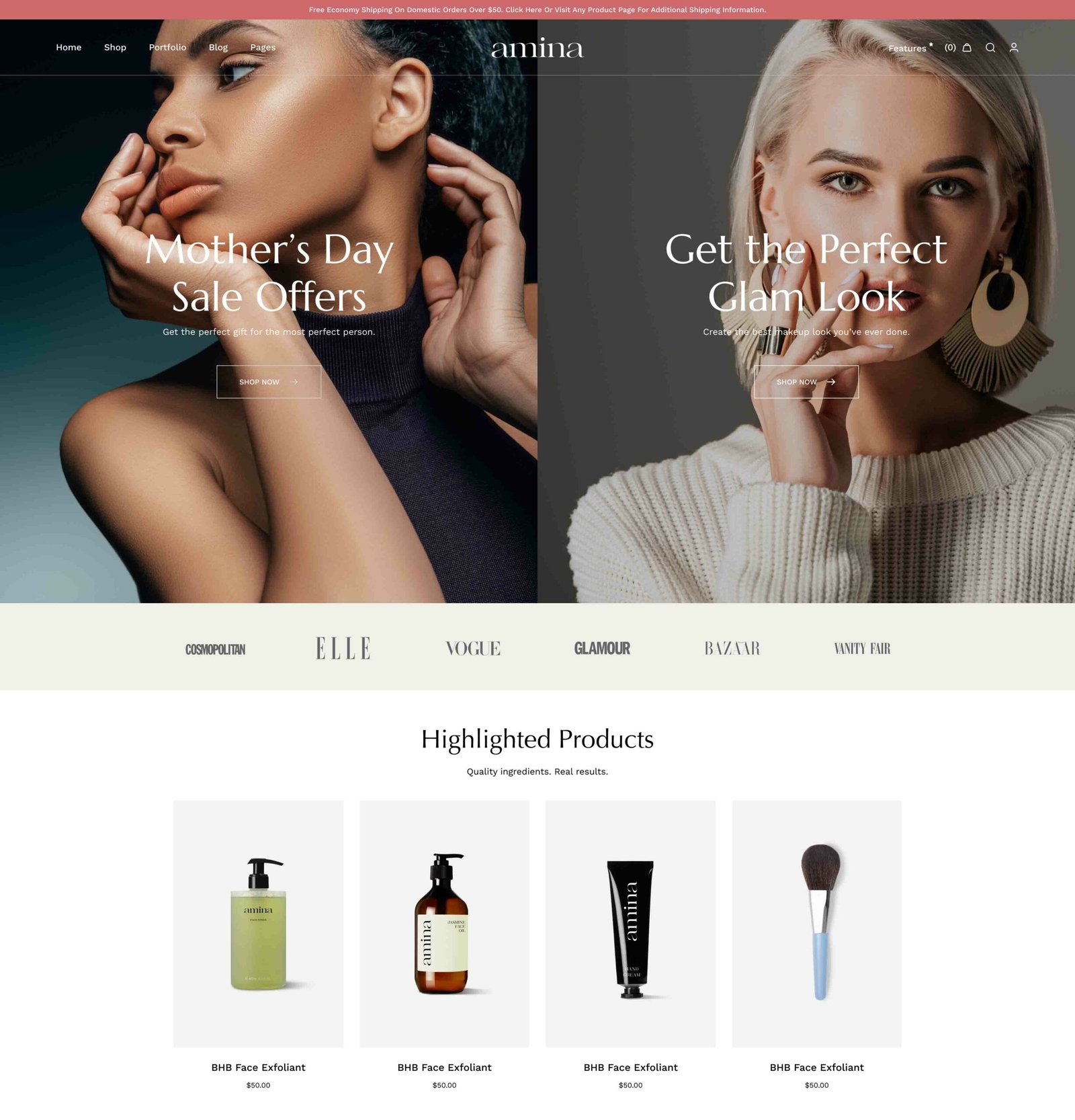 Choose from the alluring pre-made homepages that you can import on a single click to create unique online stores with Amina.